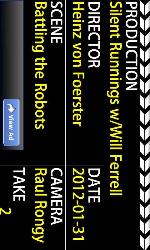 The screen doubles as an editing interface, making this the easiest to edit clap-board app around. Just tap on the field you want to modify and the app responds. No hunting in the menus for most changes.