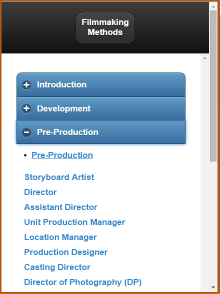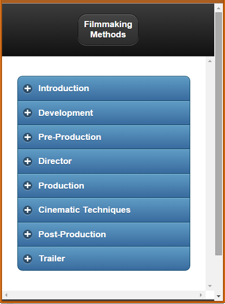 # In this app the whole process of film making is described briefly. The process of filmmaking is divided into three main parts. These are: