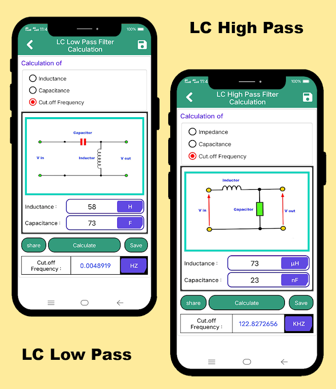 Filter Design App calculate all circuit perimeter of passive and active filter, band pass, Butterworth, RC, RL, LC, RLC, band stop, sallen and key, passive crossover network filter.