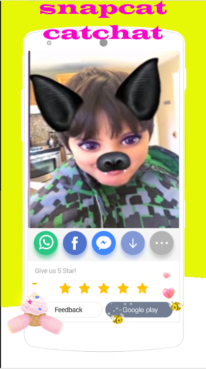 snapcat catchat face camera adds of sticker and emoji. Live cat face camera change the sticker and funky face camera. Selfie cat face camera selfie also call is cat face editor. Cat face camera editor in super cat stickers. This sticker same as rabbit face camera and cat smileys. cat photos is same as pet camera editing and snap camera or camera snaps. Open face came also take a selfies and snow camera effect in this selfie camera as soon as cute camera. Kawaii camera in also available cat face camera filters. Selfie take time whiskers add our cute cat sticker and cute cat stickerss. Grumpy cats in style camera to take cute cat sticker cam. A mosaic camera is face changer camera and face effects and funny camera effects & funny camera faces. Let's application download cat face camera filters to make your pictures become more cute and funny as cat face camera will facilitate your imagination become real to make your photos more funny invite your friends to add to the fun with applications cat face camera and video make