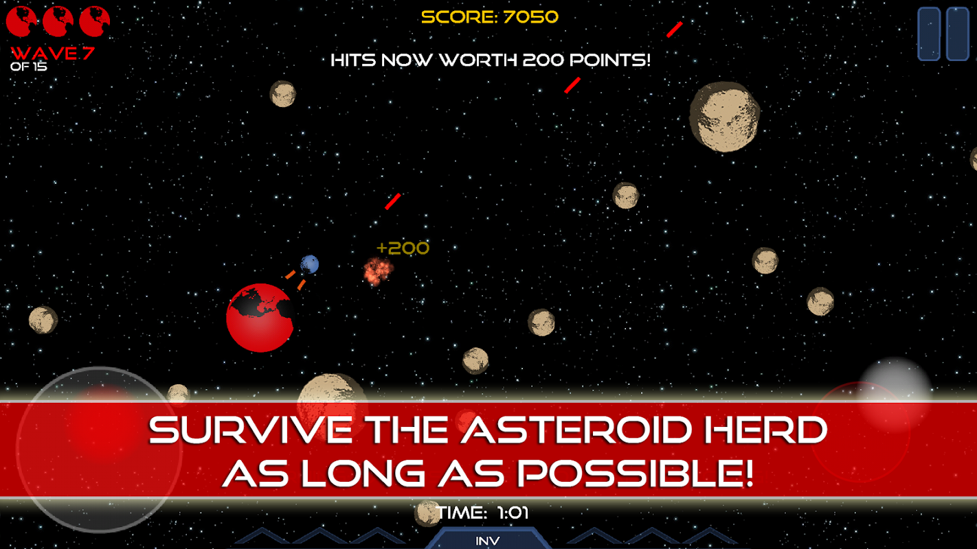 The Earth has fallen out of orbit into the random chaos of the asteroid belt. As the only home humanity has ever known approaches its imminent demise, you must show your courage under fire, cunning reactions, and excellent piloting skills to keep the Earth alive as long as possible. How will you fare in the Final Hour?