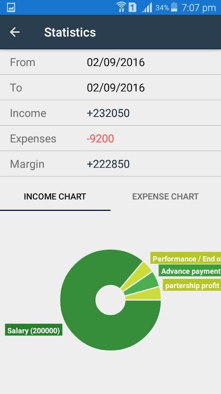 It gives you an overview at a glance by using Graphical user interface for income and expenses chart.