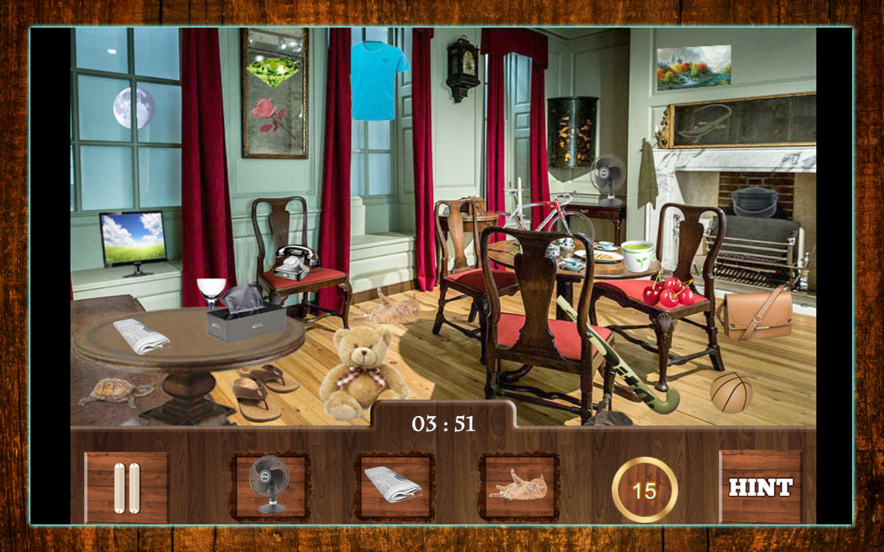 Find Hidden Objects Rooms is volume 2 of our popular hidden object games series which is a free game packaged with 15 beautiful levels of house interiors and living rooms. The messy rooms full of numerous little objects to search make it one of the best free hidden object games on Google play. It is a very challenging and addicting find hidden objects puzzle full of adventures and entertainment for both kids and adults. Each game level can be played in easy mode or hard mode. In easy mode you are given ample time to search for the objects with full peace of mind. The hard mode is a time constrained mode which is a real challenge to test your visual skills to search all the stuff in a short time. Sharpen your brain and relax while enjoying the hand crafted levels with heart touching background music.