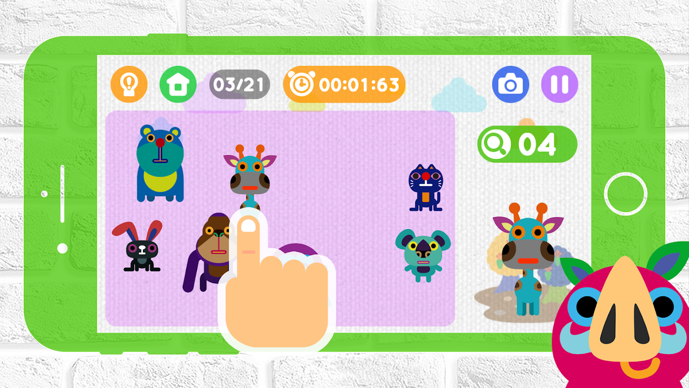 3. "Catch Me" is an agility game to find the same shape of an animal.