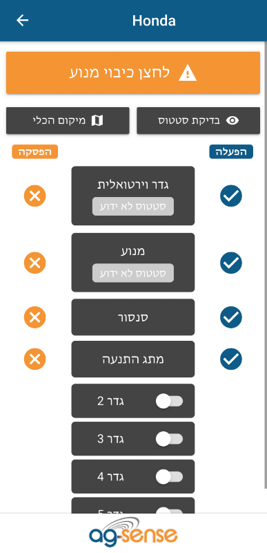 ניהול מרחוק של המכשיר: שליטה וניטור של המכשירים שלך מרחוק. בין אם זה להשבית רכב או להפעיל חיישנים ספציפיים, AG-Sense מספקת את הכלים לאוטומציה יעילה של המכשיר.