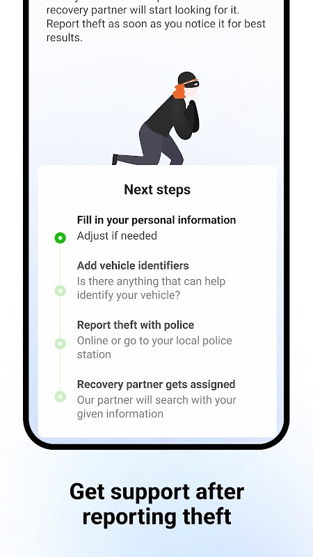 🔐 Theft reporting: In the unfortunate event of a theft, report it effortlessly through the app. Our system will forward your theft case to the recovery partner, providing quick assistance to find your vehicle.