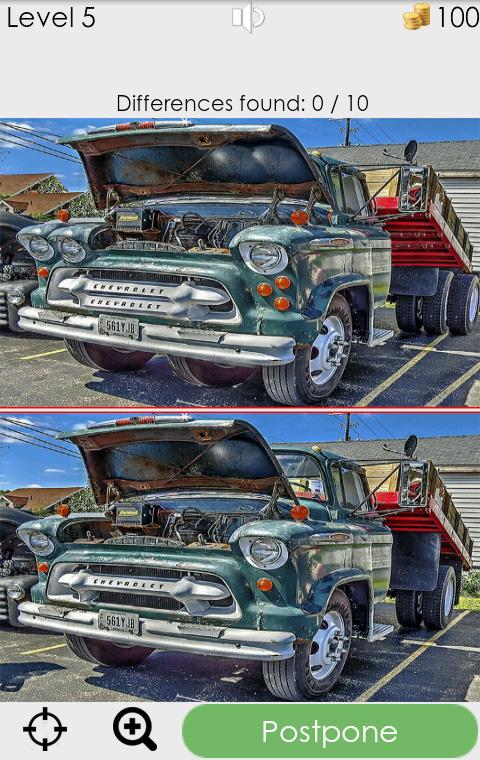 Look at two pictures and try to spot 10 differences - like a hidden objects, but instead of items you should find differences.