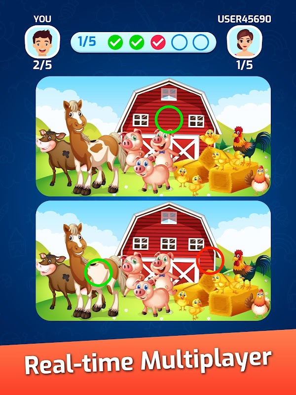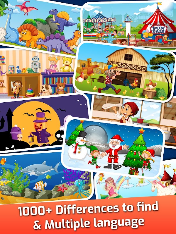Spot the Difference features intuitive touch controls that allow you to easily tap on the differences you spot, and the game provides hints to help you when you're stuck. You can also zoom in and out of the images for a closer look, and use the "reveal" feature to uncover hidden differences. With its engaging gameplay, stunning graphics, and relaxing music, Find the Difference is the perfect game to unwind and sharpen your observation skills.