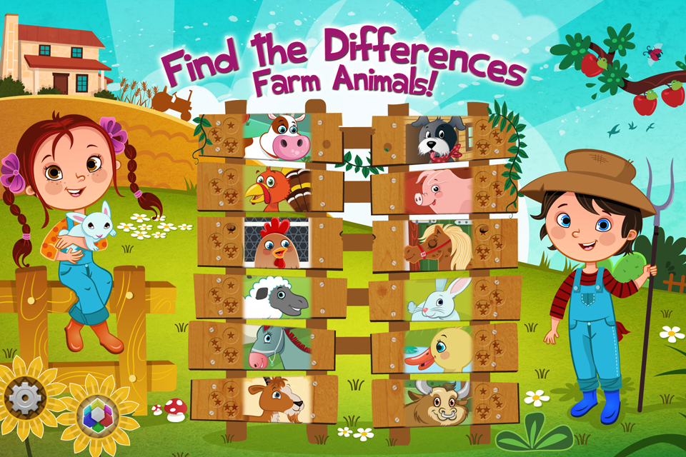Find the Differences is a fun game of spotting the difference in 12 scenes with cute cartoon farm animals. With 3 levels of difficulty and by randomizing the differences for each scene, there is a challenge for everyone with a great replay value.