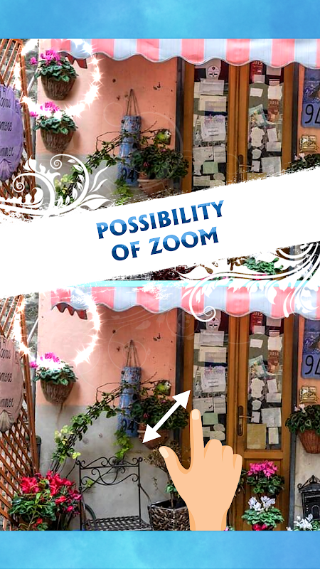 When you passed a level, you will get a hint. If you stuck at the level, use this hints. Some differences will be hard to find, and some would be easy. In the beginning, there will be 3 levels available. Pass the level to unlock another one. If you not enough see detales of picture, you can zoom it with fingers.