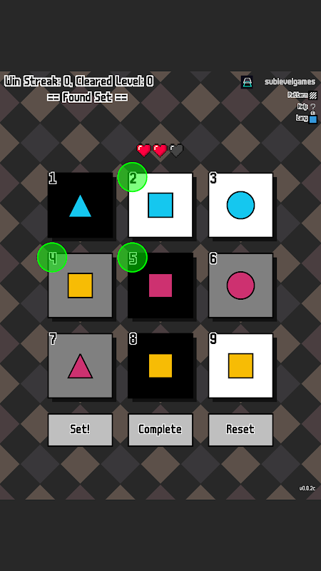 The objective is simple: match three cards either with all identical attributes (back color, polygon color, and polygon shape) or all different attributes. Players must strategize to carefully observe and analyze the attributes of each card to make the right combinations.