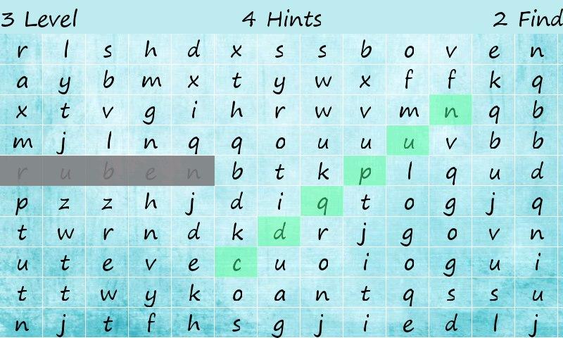 At each level it is necessary to find the three words, one diagonally one vertical and one horizontal