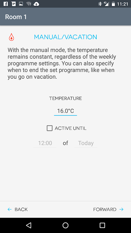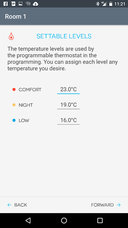 With the application, it is possible to programme the temperatures on a weekly basis, change the temperature programming for 24 hours, suspend the programme when you go on holiday, and regulate the temperature comfort levels.