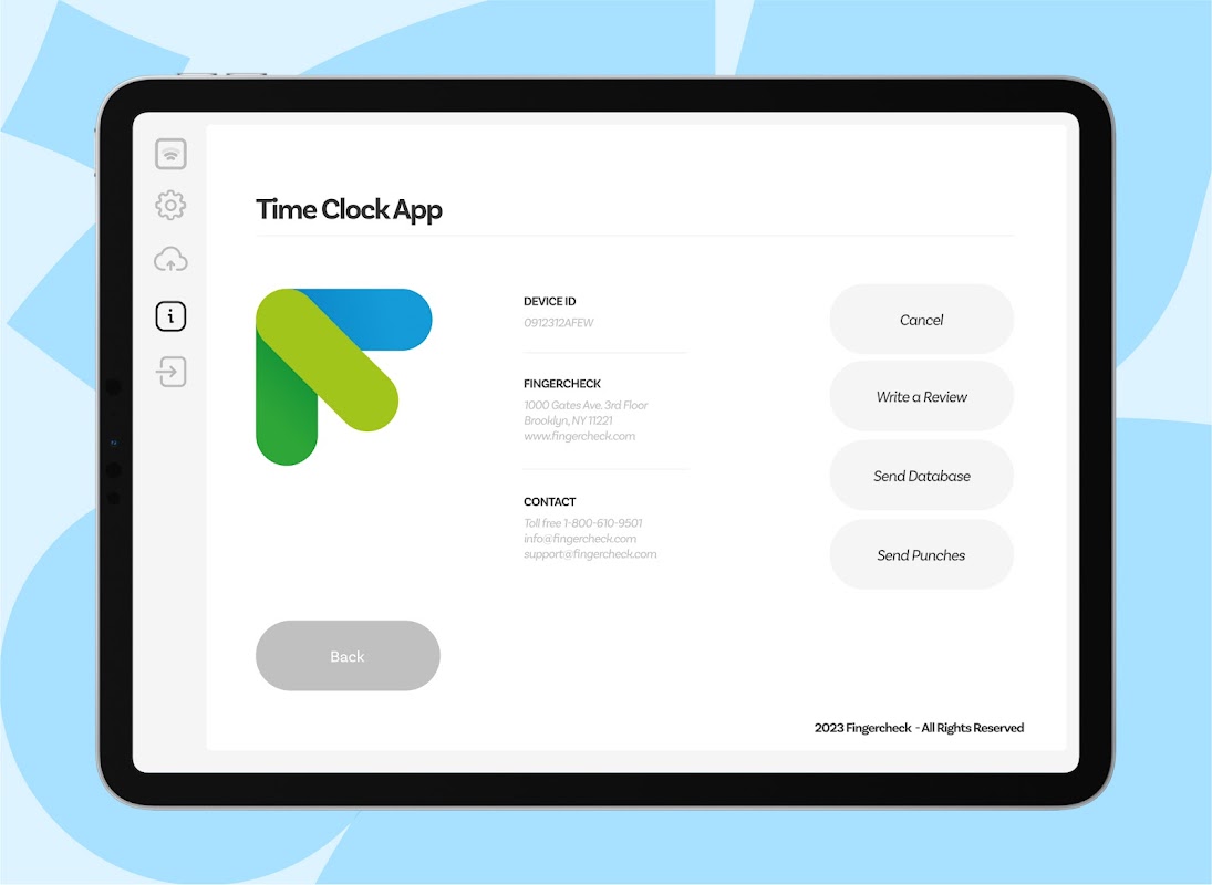 The Fingercheck Employee Time Clock app turns your Android device into an instant time clock, providing a cost-effective solution for time tracking. Our app works exclusively with your Fingercheck subscription.