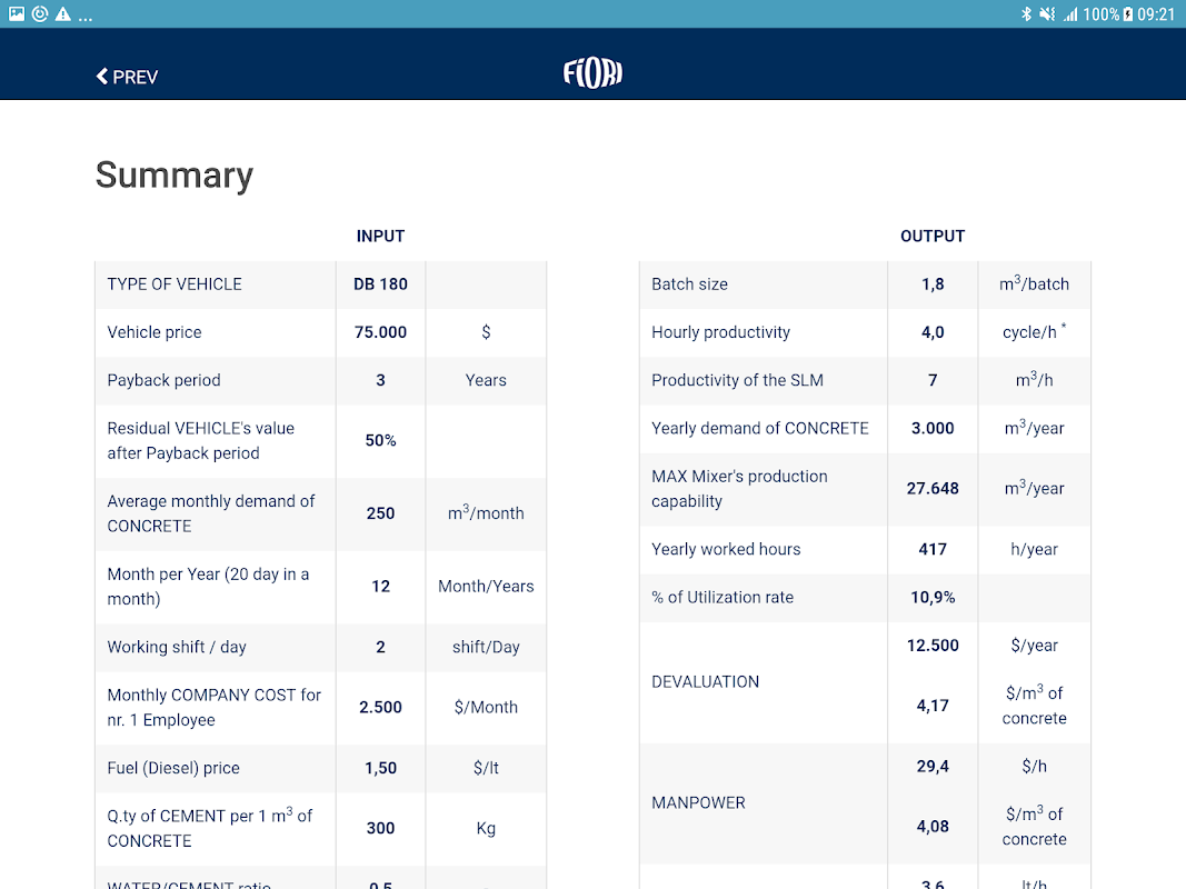 The SAVING CALCULATOR APP is an effective FIORI GROUP tool that allows any user to see independently the return on investment derived from a purchase of a FIORI GROUP vehicle based on several variables that vary according to the market in which the product will be sold or operated.