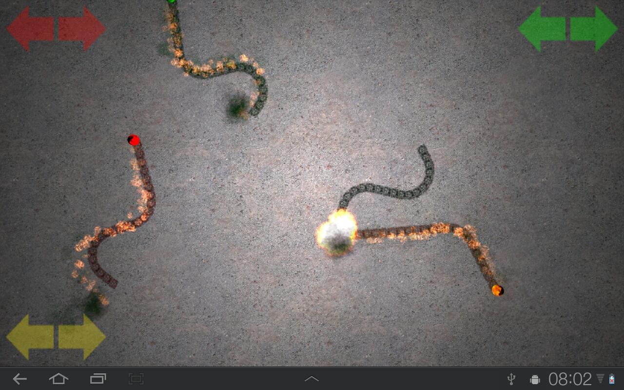 Players control the fireball with the buttons onscreen. The goal is to not hit the borders or other players and be the last one to survive!
