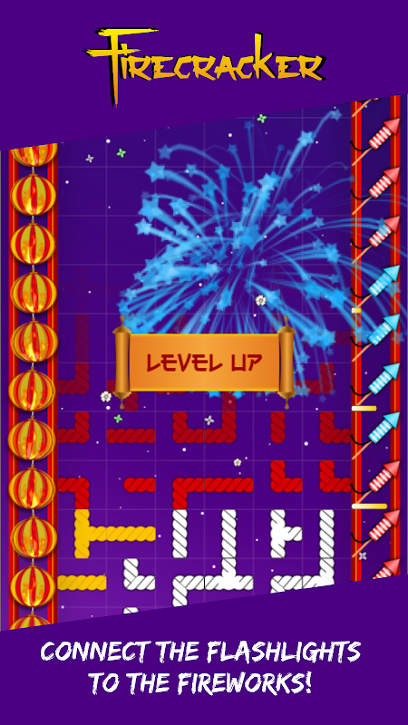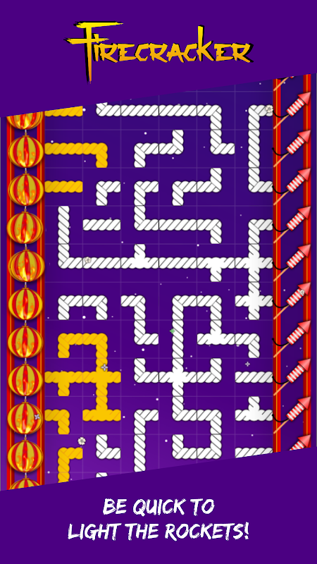 In Firecracker, your mission is to spin the strings and connect the Chinese lanterns to the rockets, creating a web of light and color. Each string you spin is a chance to light a new rocket, but be careful: time is running out! With each level, more fireworks need to be lit to create dazzling explosions in the sky. But if time runs out, the sky loses its magic. The faster and more precise your movement, the more incredible the explosions will be!