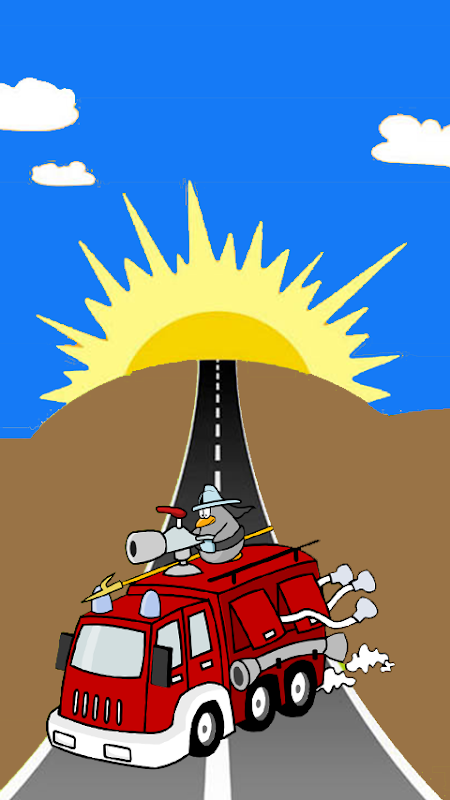 Drive an awesome firefighter on highway. Be careful with traffic and car crossing road.