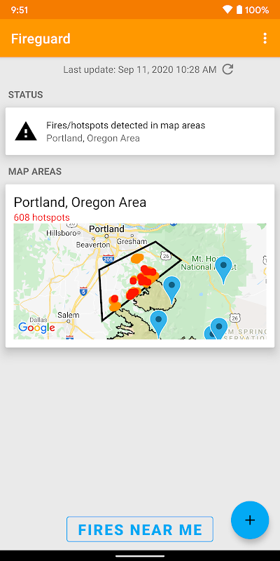 QUICK START: Open app and tap on "Fires near me"