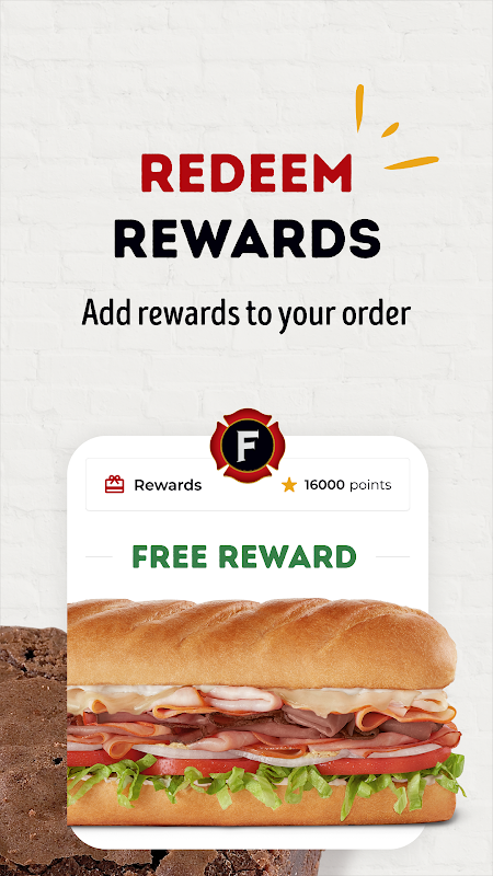 • Loyalty program: Earn 1 point for every $0.01 you spend at Firehouse Subs, and save up your points to redeem free food rewards for subs, upgrades, and more!