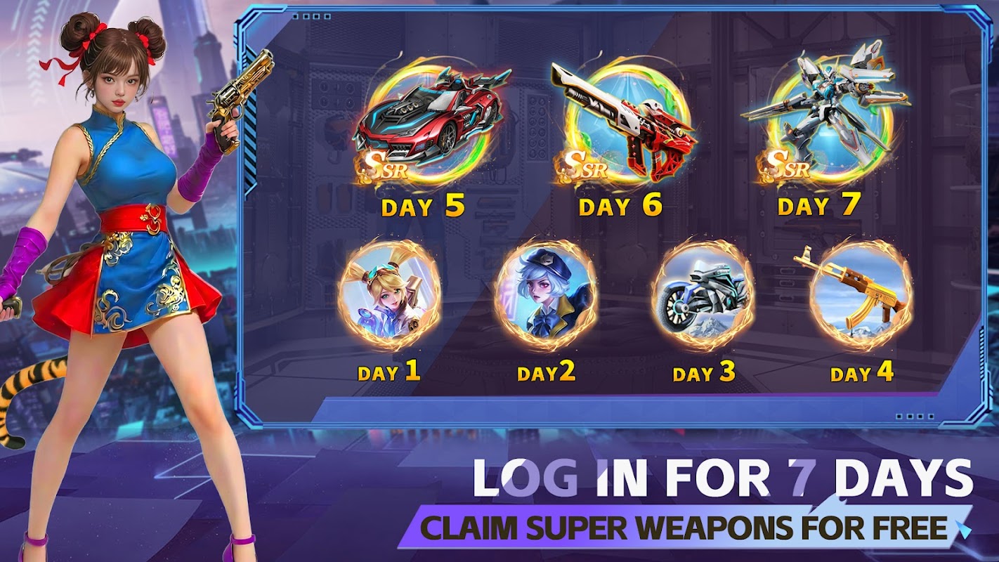 •Log in for 7 consecutive days and receive a massive haul of advanced firearms, cool skins, and extraordinary mounts!