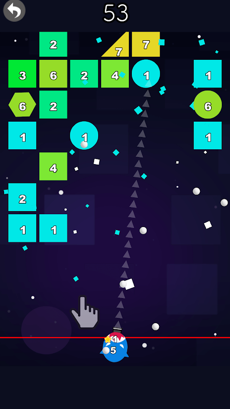 Players trigger blocks by firing pinballs. After each contact with the blocks, the corresponding number decreases and the blocks disappear. There will be balls and stars hidden in the blocks. Let's collect them together.