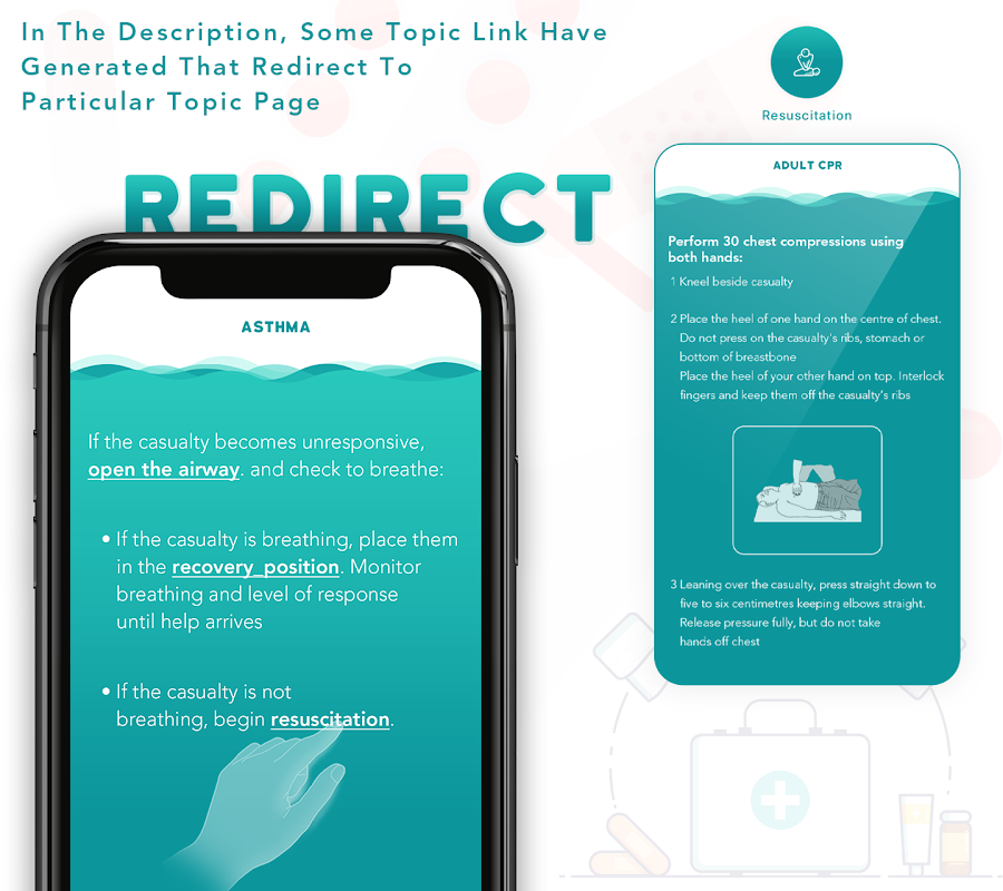 This App includes FirstAid mediacal emergency situations advice.
