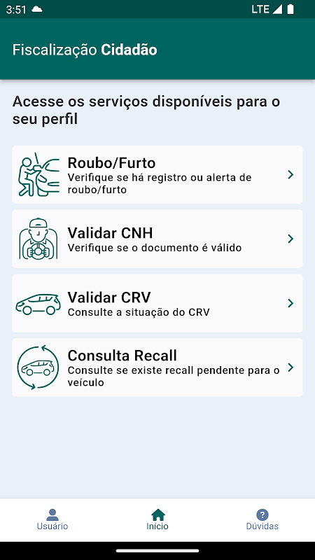 The Senatran Inspection application allows up to 5 consultations per day for the citizen profile, for the transit agent profile the number of consultations is unlimited.