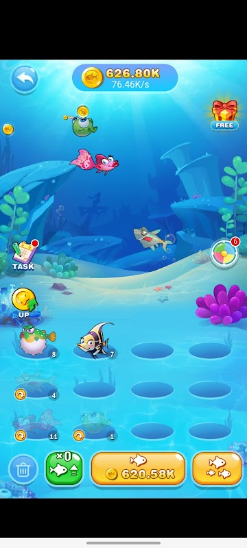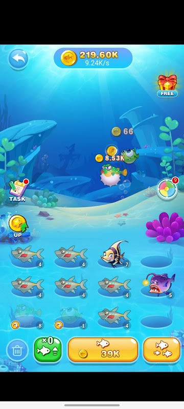 You have a lot of fish in your tank, you must merge the same fish to the new and big fish. Be aware that the price for every new fish increases each time you buy one.
