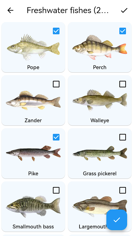 For convenience of display, you can choose to only desired fish species, disabling forecast for that types of fish that you are not going to catch soon. Fishes are distributed by families in App settings.