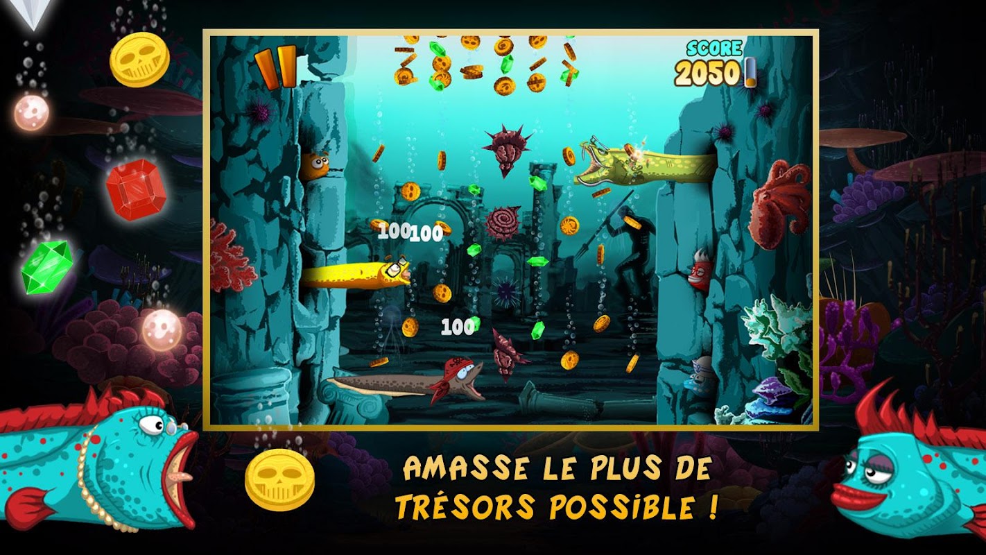 Click on fishes to make them eat the coins and gold falling into the depths. But take care, don’t eat everything you see because it occurs that some sea urchins or anchors fall in the middle of treasures.