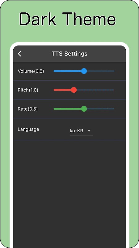 * TTS settings - You can set the volume, pitch, speed, etc.