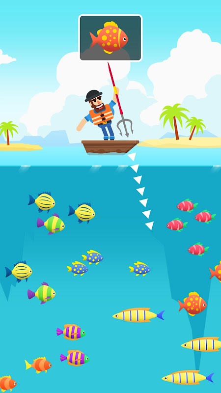 You are a novice fisherman on a vast ocean. In the beginning, all you have is a broken harpoon and a broken boat. You can hone your fishing skills to catch more fish and sell them to earn gold to upgrade your harpoon and boat. In the end, you might get triton's harpoon and a ship to the new world.