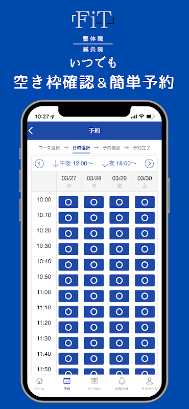 You can receive the latest information and great deals from [FiT Acupuncture Clinic/Chiropractic Clinic] through the app. You can also check the menu, your desired time slot, and make reservations from your smartphone at any time. By installing the app, you can use [FiT Acupuncture Clinic/Chiropractic Clinic] more conveniently.