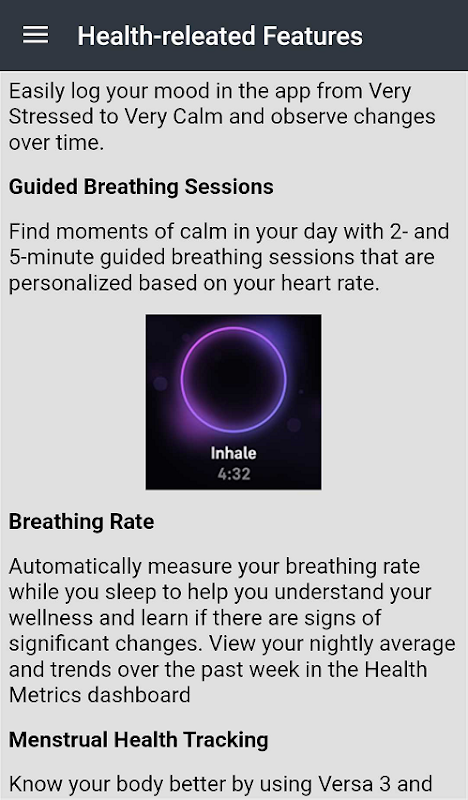 You can find out what you are wondering about the Fitbit Versa 3 smartwatch from our app. The device stands out with its built-in GPS, always-on display, fast charging support, an always-on heart rate sensor and battery performance. Fitbit versa 3 guide app includes topics such as;