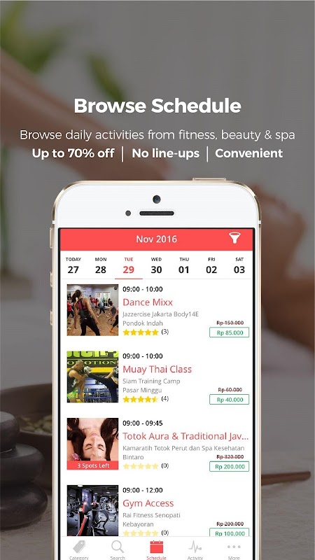 Fitnesia members can make real-time booking for any activities for much cheaper than they would normally pay for drop-in activities.