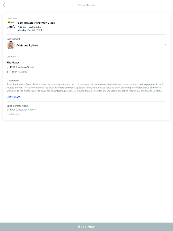 Seamless Class Booking: Browse our diverse range of Pilates classes and easily book your favorite sessions in just a few taps.