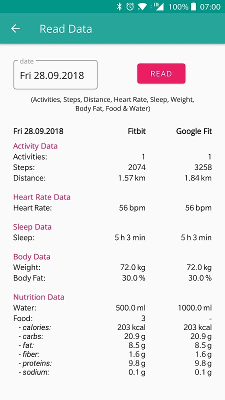 NOTE: It may happen that the data you transfer is not immediately visible in the Google Fit app, because it will take a while for all the images to be updated.
