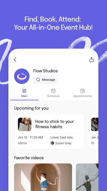 By using the FIVE 30 STUDIO app you will be able to book new in-person classes and you will be able to see the classes you have booked. You will also be able to manage your account and edit your card on file. In the app, you'll be able to see the schedule of classes available.