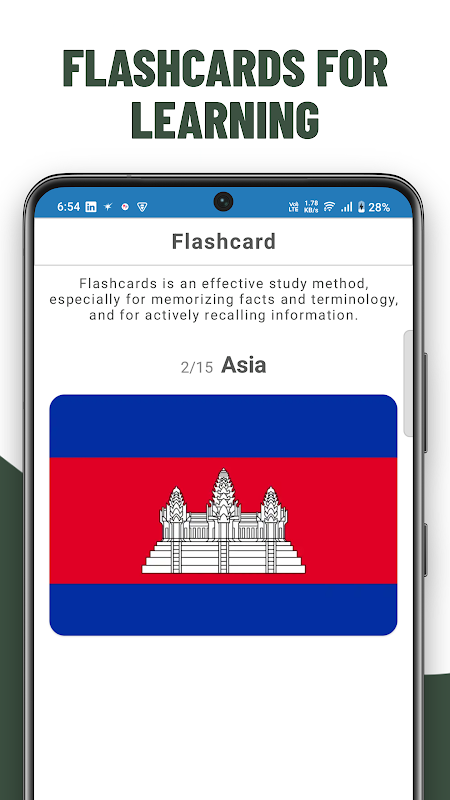 Learning Mode – Use flashcards to learn and memorize country flags at your own pace.