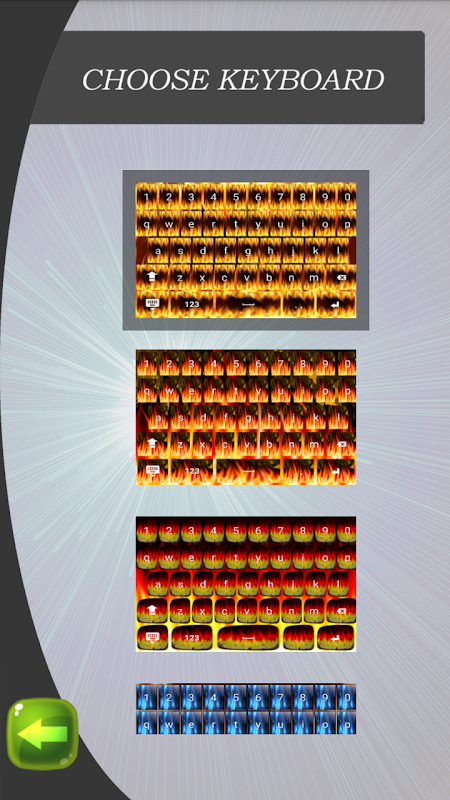 Are you ready to explore the top keyboard customizer? It looks fantastic with those fantastic pictures of roaring fire with magical sparkles. The strong orange and red colors that paint this element of nature are so brilliant that they amaze you completely. Then you see the cold blue ones and you are thrilled with it. Have you heard that you can take a photo right away and use it as the background image? Unbelievably as it may sound but it is true and you must be happy for it. Combine it with the magnificent button shapes and create your own personalized design. What is also important to mention is the possibility of using the background color changer. There you can pick any of the shades that you like and embellish your layout with it. Do not think twice but rush to the market and get the newest ☀Flame Keyboards☀ with which you can customize your phone using the most spectacular theme.