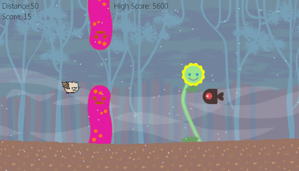 Help the grumpy bird to get his flowers! Your score will increase faster and faster if you will travel a long way!