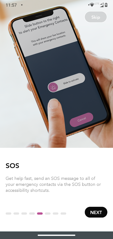 SOS: Send out an SOS if you feel threatened or unsafe at any given moment. This sends your live location link to your emergency contacts, using What3words, enabling help can be found efficiently.
