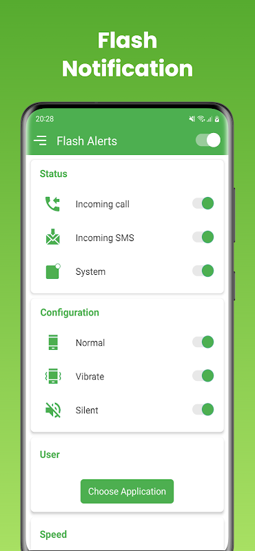 ✔ Choose to have flash alert on or off when the phone screen is on