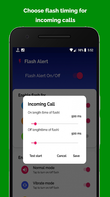 Flashlight alert app - call flash light app can work effectively in different phone modes ( Ring, Vibrate, Silent )