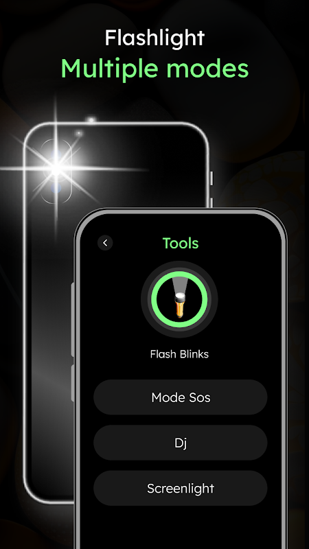 * Different LED Flash tool modes like SOS, DJ, and Screenlight