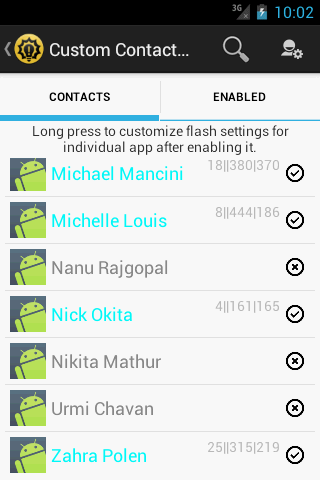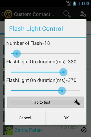 1) Enable white list feature to enabled flash only for specific contact in custom contacts settings->contact setttings
