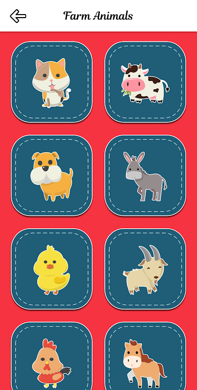 This app contains over beautiful images into 5 categories namely: Farm Animals, Wild Animals, Fruits, Vegetables and Vehicles. Each Farm Animals and Wild Animals also include animal sounds respectively. The app also contains free built-in "Identify the Picture" game at the end of each category to help you test your child's memory.