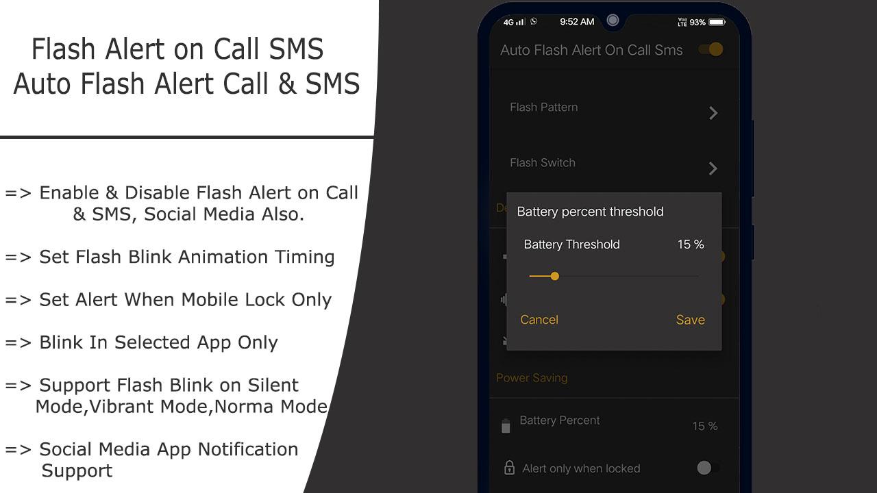 => Brightest Flashlight alert On Incoming Calls.