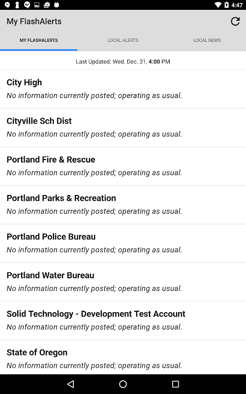 FlashAlert Messenger allows the public to view local news, and receive push notifications of emergency alerts from FlashAlert Newswire. You may use it as a stand-alone news viewer or link it to your FlashAlert Messenger account for emergency alert push notifications from the schools, police agencies or organizations you have selected.